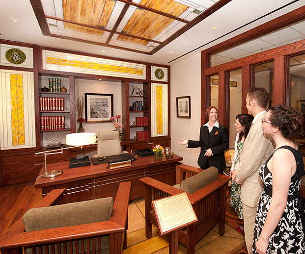 Detta monument från sekelskiftet, som ligger i en av de stadsdelar i Los Angeles med omnejd som har mest gångtrafik, har bevarats i en unik blandning av gammalt och nytt. Dess arv avspeglas i den restaurerade exteriören i Beaux Arts, dess klassiska fyra våningar höga galleria med skylight, och dess inredning och fönster med färgat glas i Arts & Crafts-stil.