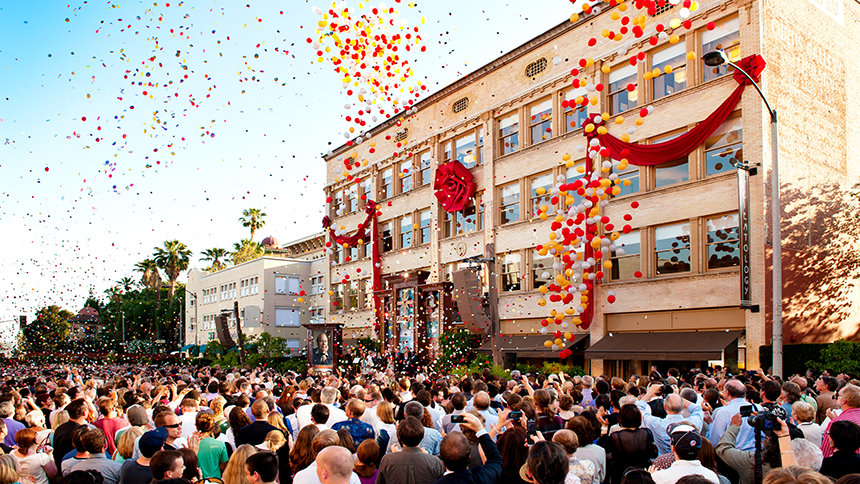 Den 18 juli 2010 fyllde över fyra tusen scientologer och deras gäster gatan framför 35 South Raymond Avenue, i hjärtat av Pasadenas äldre delar, för invigningen av den nya Scientology Kyrkan i Rosornas stad. David Miscavige, styrelseordförande för Religious Technology Center och religionen Scientologys kyrklige ledare, talade till folksamlingen och invigde den historiska, 5 500 kvadratmeter stora byggnaden, och kallade den ”en helt ny typ av Scientologi-organisation – en som man tidigare bara drömt om för denna stad.”