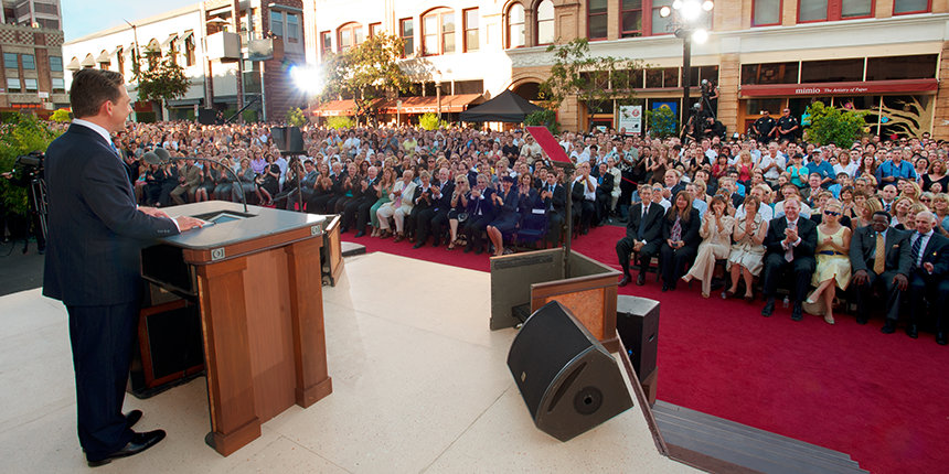 David Miscavige betonade betydelsen av denna nya kyrka både för Pasadena och för samhällena i hela San Gabriel Valley: ”Ni är nu en del av en rörelse som saknar motstycke i vår historia och den växer i styrka för varje dag. För uppriktigt sagt så är vi djupt engagerade i att hjälpa hela mänskligheten. Vad det beträffar – oavsett hur allomfattande och global Scientology är idag – låt ingen glömma att mänskligheten består av individer. Var och en är unik på sitt eget sätt och var och en har en historia som kommer att göra en bedrövad – om man inte gör något åt det. Så ta denna ideala organisation och utnyttja den till fullo. För det finns verkligen mycket hjälp som vi nu måste ge. Och det är det löfte vi ger i dag till staden Pasadena.”