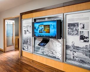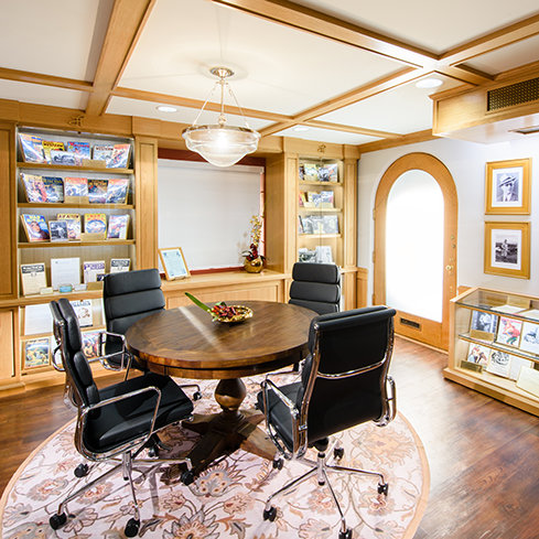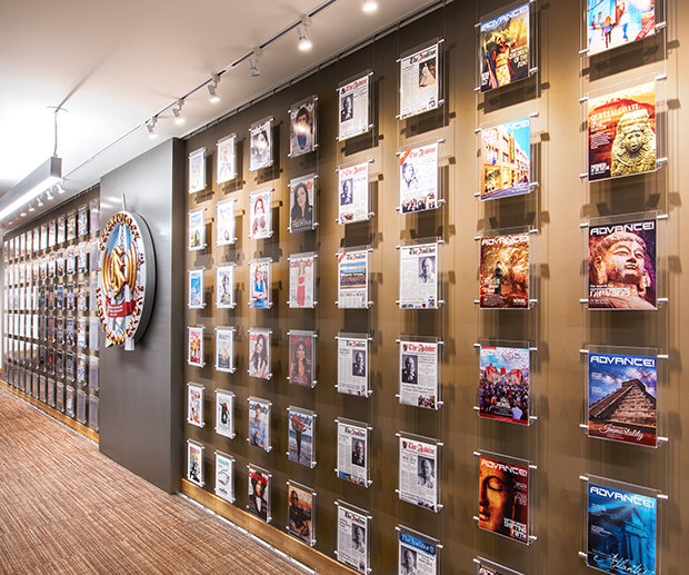 speglar korsningen av L. Ron Hubbard historia och studions historia. På väggarna finns det stora affischtavlor från filmer och följetonger som L. Ron Hubbard skrev manus till för Hollywood.