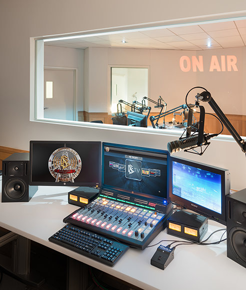 I studions centrala administrationsanläggning, utformar Kyrkan sina meddelanden för sändning och förbereder dem för distribution på tv, radio, podsändningar och alla andra mediakanaler.