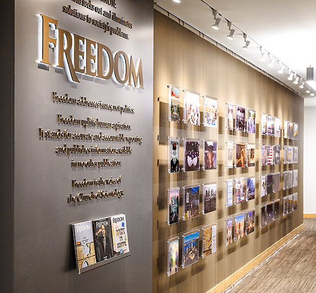söker lösningar på samhällets problem och framhäver mänskliga strävanden. Freedom utökas nu bortom tryckta medier till radio, tv och internet.