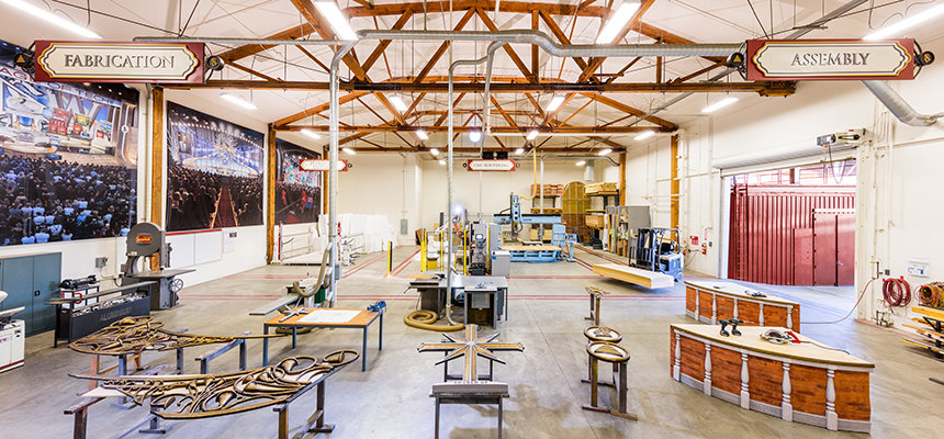 Dekorverkstaden, inrymd i vad som var studions första filmningsscen, är utrustad med det senaste high-tech-maskineriet för att bygga 3D-kulisser och dekor.