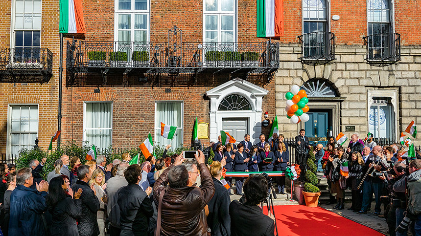 Det nya Kontoret för nationella angelägenheter ligger bara några kvarter från några av Irlands mest berömda nationella monument som inkluderar National Gallery, National Museum of Natural History, Trinity College och Leinster House, sätet för parlamentet. Den historiska byggnaden är ett klassiskt exempel på en del av Dublins finaste georgianska arkitektur, och har anor tillbaka till 1760-talet – långt före födelsen av den amerikanska demokratin, och före den stora utvandringen av irländska familjer till dessa västra kuster. Nu, mer än två århundraden senare, har det blivit hem för kyrkans växande mission på Irland.