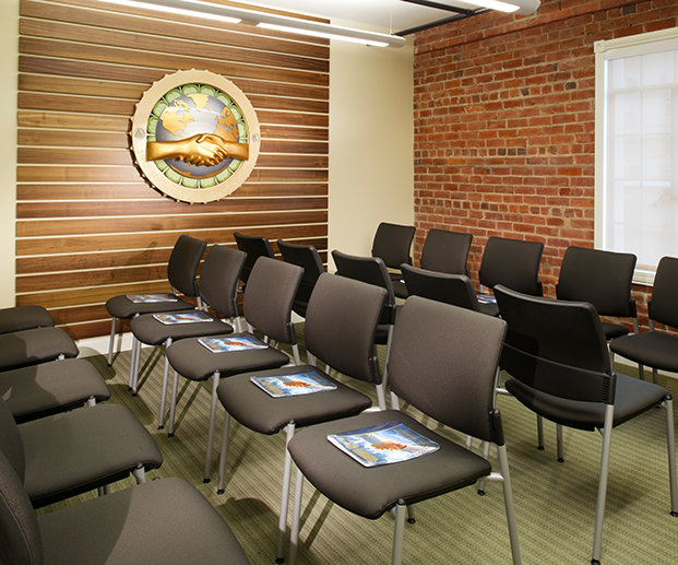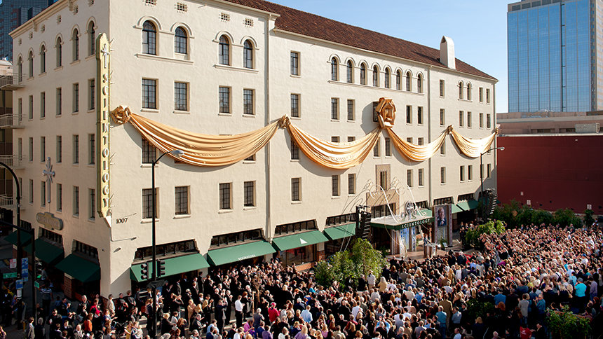 The Church’s new home, located just blocks from the State Capitol, is one of the city’s most prominent architectural landmarks. Originally opened in 1930 as the Ramona Hotel and designed by California’s first state architect, the building is Sacramento’s finest surviving example of the Spanish Colonial Revival style. The Church meticulously preserved the building’s structure and restored its features to their original glory, including the characteristic stucco, ornamental glazed brick and terra cotta tiles, decorative iron accents and the original blade sign. All restoration was planned and executed for minimal environmental impact and maximum sustainability, meeting the U.S. Green Building Council’s Leadership in Energy and Environmental Design (LEED) gold certification standards.