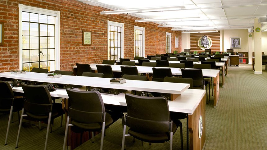The entirety of the ground floor has been reserved for Introductory Services, welcoming visitors and those wanting to find out about Scientology for themselves. It further includes an expansive Public Information Center, providing a complete introduction to the beliefs and practices of the Scientology religion, as well as the life and legacy of Scientology Founder L. Ron Hubbard. The Information Center additionally presents a detailed overview of Church-sponsored humanitarian programs, including a worldwide human rights initiative; an equally far-ranging drug education, prevention and rehabilitation campaign; a global network of literacy and learning centers; and the Scientology Volunteer Minister program now comprising the largest independent relief force on Earth. In full, the Information Center’s multimedia displays offer some 500 informational and documentary films at the touch of a button. The Center is open morning to night and visitors are invited to tour at their leisure and return as often as they wish.