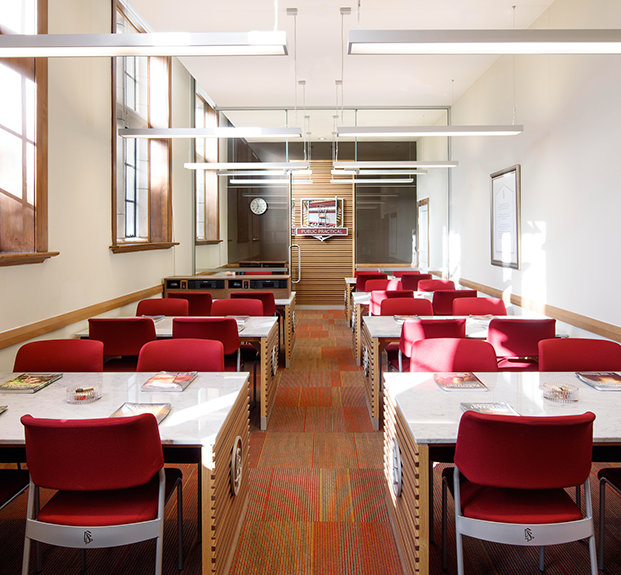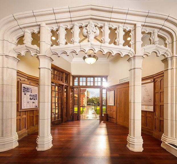 Hon anmärkte att allt arbete – från det röda teglet och stenen från Oamaru som täcker fasaderna, till återställande av det utsirade ekvirket i entrén och biblioteket, och att ta vara på panelerna i träslaget rimu och golvbrädorna i jarrahträ – har gjort att fastigheten blivit till ett konstverk i sig.