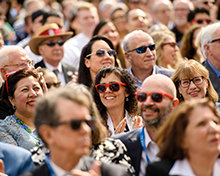 Like berömmande var Barbara Gaughen-Muller från Tri-County United Nations Association, som nämnde Kyrkans outtröttliga engagemang för människorättsundervisning, vilket inspirerar till forum och workshoppar i friskolor och ideella organisationer. Mot bakgrund av Scientology-grundaren L. Ron Hubbards eviga engagemang för att skydda mänskliga rättigheter sade Gaughen-Muller: ”För 75 år sedan var profetian för FN att: i dess unika glasbyggnad fanns det en kraft som skulle förändra världen. Ja, ni har nu ert eget vackra glashem här, där hela världen kommer att se er. Er närvaro är kraftfull. Så inför er grundares födelsedag, låt oss säga: ’Ja, mr Hubbard, här är ett hus för evig frihet för att förvandla människors liv längs hela denna Guldkust!’”