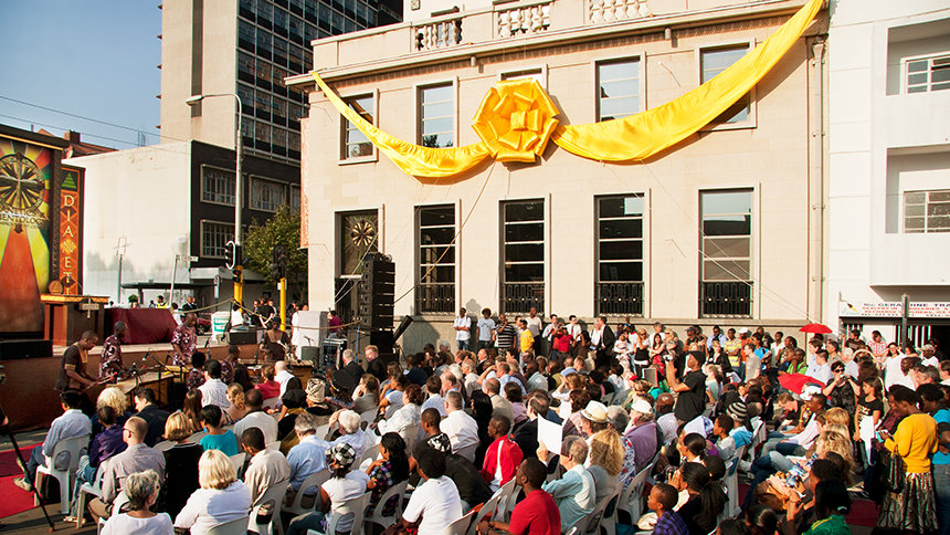 Centret ligger nära universitetet Witswatersrand (WITS) i distriktet Braamfontein, och betjänar således ett skiftande samhälle vars gemensamma mål uttrycks i distriktets motto: ”Den plats där människor stiger till storhet.” I egenskap av konferencier och centrets chef lovade Edmund Dladlu att arbeta med samhället för att förverkliga detta motto.