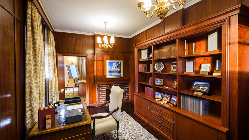 I dag står denna plats i brittisk kolonialstil minutiöst restaurerad – precis som den var under Mr. Hubbards tid. Tapeter, skåp och belysningsarmaturer har matchats med arkivfotografier. Konstverk har återställts. Samma skrivmaskiner som Mr. Hubbard tillhandahöll till sitt team av maskinskrivare har bevarats troget. Bland andra artefakter som visas finns kostymen han bar när han filmade sina legendariska Clearingskurs-föreläsningar, och till och med resväskan han använde när han återvände till England.