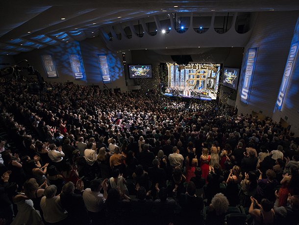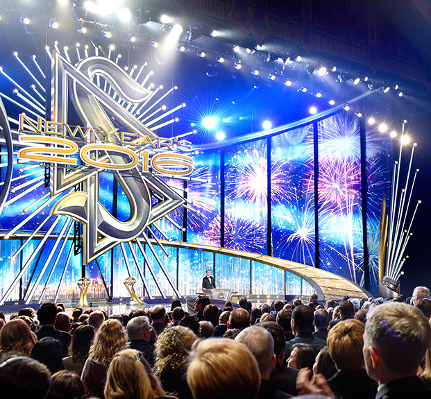 Tusentals firar tolv månader av inspirerande landvinningar vid ett högtidligt nyårsfirande, i det legendariska Shrine Auditorium i Los Angeles, med 2015 som utgör en period av historisk tillväxt för religionen.