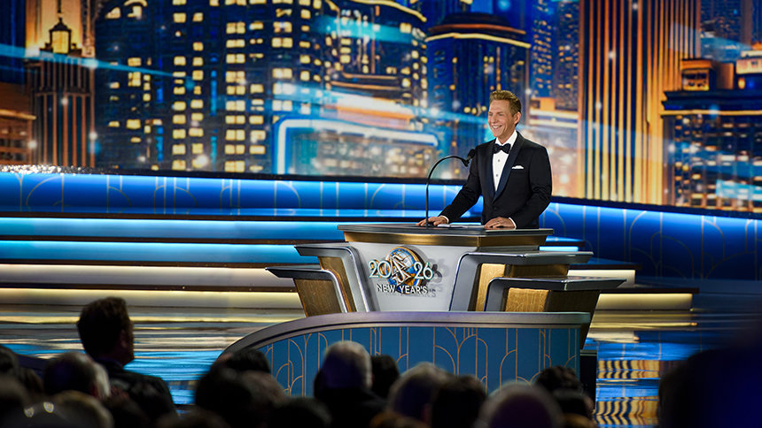 Kvällen når sin fulla intensitet när Mr. David Miscavige, religionen Scientologys kyrklige ledare, kliver in i strålkastarljuset och Nyårsfirandet 2026 brakar till liv.