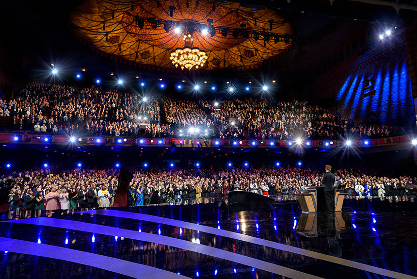 Från början präglades kvällen av kännetecknen för ett Scientology-nyårsfirande – elegans, förväntan och en känsla av syfte. Mer än 6 500 gäster, klädda i formella aftonkläder, fyllde den historiska salen för att hedra de monumentala prestationerna under 2025, med blicken riktad mot en gränslös horisont som vecklade ut sig framför dem.